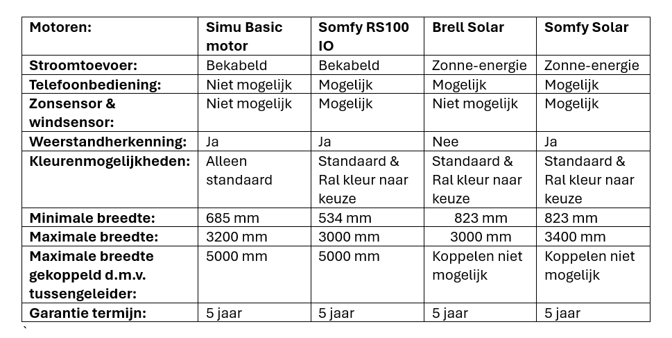 De Simu Basic motor, de Somfy RS100 IO motor, en de Brel solar motor