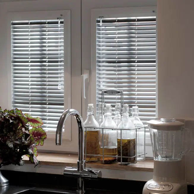Dit product bestaat uit allemaal losse lamellen gemaakt van aluminium, wat zorgt voor een luxueuze uitstraling. Doordat het product volledig gemaakt is van aluminium is het ook geschikt voor vochtigere ruimtes en kunt u dit product dus ook prima in bijvoorbeeld uw badkamer ophangen.